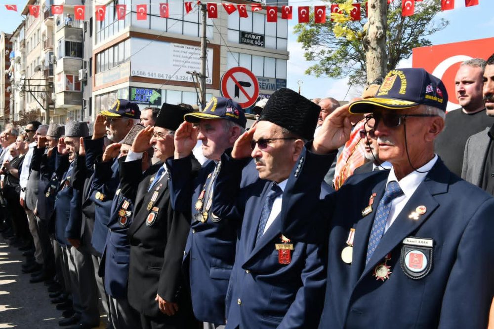 Şehitlik ziyareti, Kur’an tilaveti ve duaların ardından Belediye Bando Takımı eşliğinde kortej yürüyüşü düzenlendi. Bursa Caddesi boyunca süren yürüyüşe vatandaşlar da katılarak ellerindeki Türk bayraklarıyla kurtuluş coşkusuna ortak oldu.
