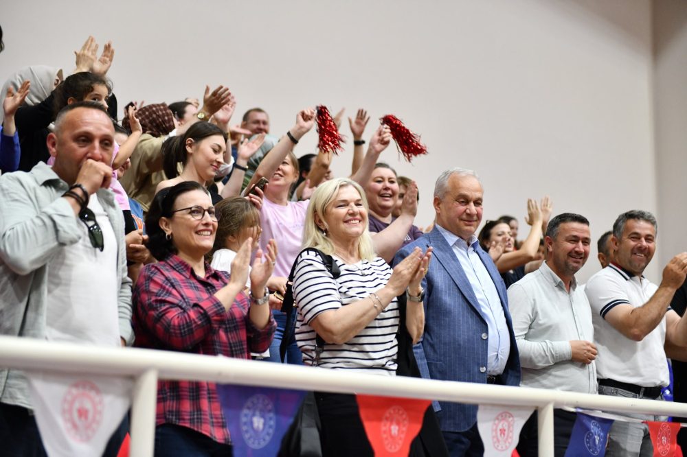 Karşılaşma sonunda büyük sevinç yaşayan oyuncular, teknik heyet ve tribünler uzun süre galibiyeti kutladı. Maçı takip eden Belediye Başkanı Şükrü Erdem’de şampiyon kızları tebrik etti.