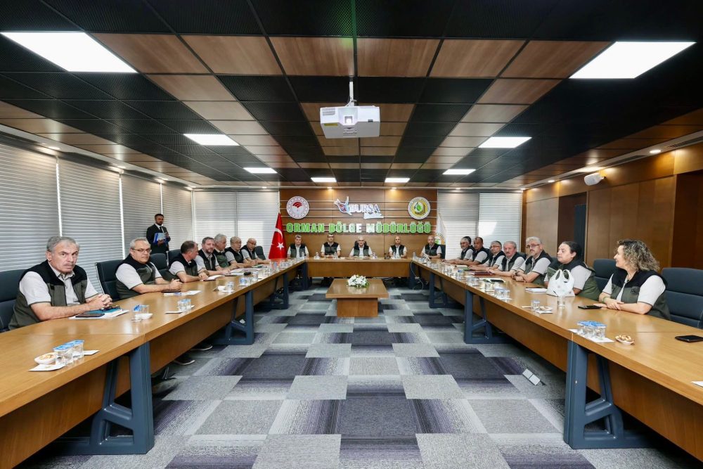 Çalışma programı kapsamında Bursa Orman Bölge Müdürlüğünü ziyaret eden Genel Müdür Karacabey, toplantı salonunda Bölge Müdürü Erdal Şahan, Bölge Müdür Yardımcıları, Şube Müdürleri, Bursa Orman İşletme Müdürü ve Fidanlık Müdür Yardımcısı ile bir araya gelerek değerlendirme toplantısı gerçekleştirdi.